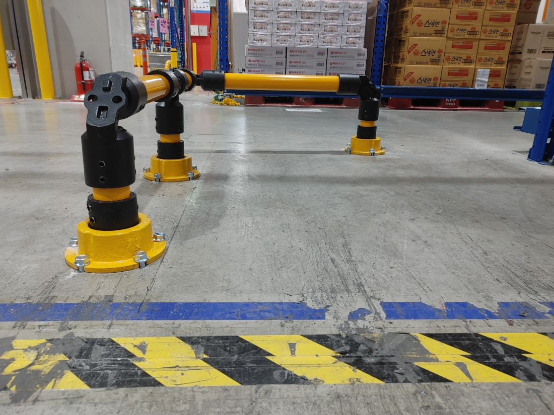 다음의 사진들은 물류 창고에서 파렛트의 보관 구역을 정확히 구분하기 위해 '스윙텍터 S type Corner' 제품을 설치한 케이스입니다.